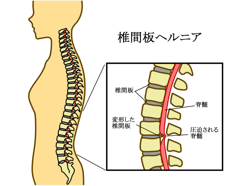 例えば、「椎間板(ついかんばん)ヘルニア」っていうのは、背骨の間にあるクッションのような椎間板が飛び出してしまうことを言うよ。ヘルニアって聞くと、腰のヘルニアが思い浮かぶ人が多いんじゃないかな?今回は腰のヘルニアについて主にお伝えしていくね♪
